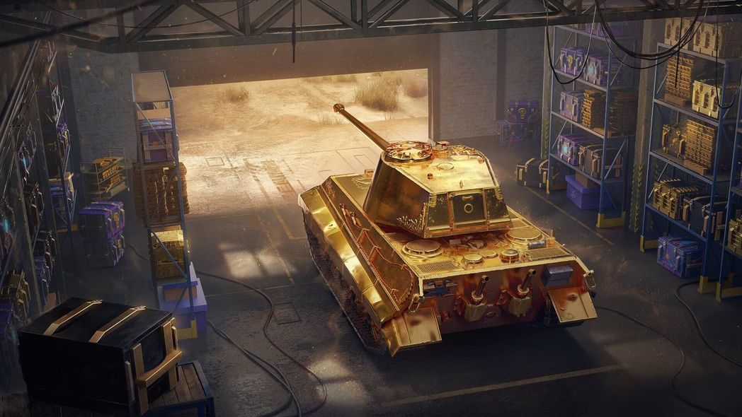Немецкий премиум танк Tiger II Gold для WOT Blitz (ВОТ Блиц) — это давно знакомый игрокам легендарный королевский тигр, только в невероятно красивом золотом камуфляже. Такому танку будут завидовать не только противники, но и союзники, ведь Tiger II Gold это первый танк в подобном камуфляже, когда-либо добавленный в игру.